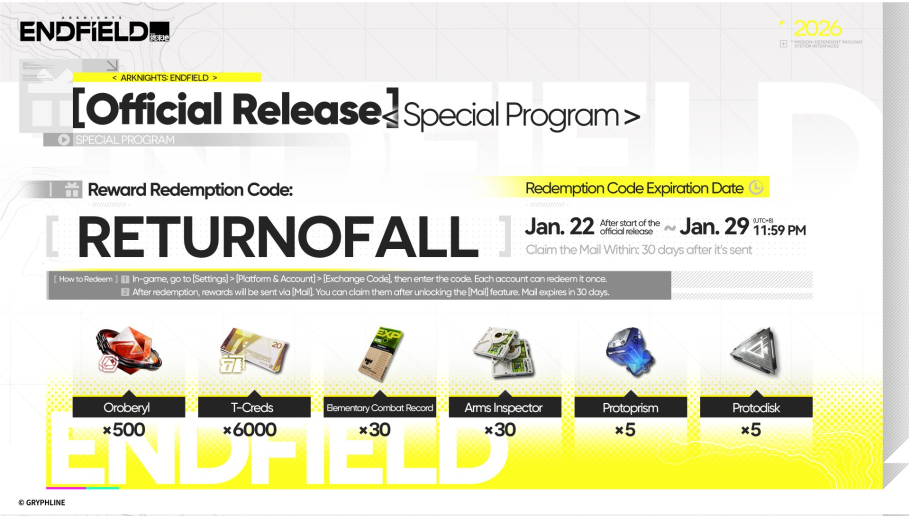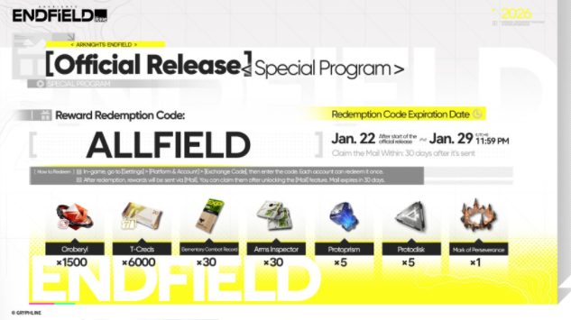 Here are all the details about The Official Release Rewards Summary of Arknights: Endfield. Endministrators can follow these details to obtain rewards.